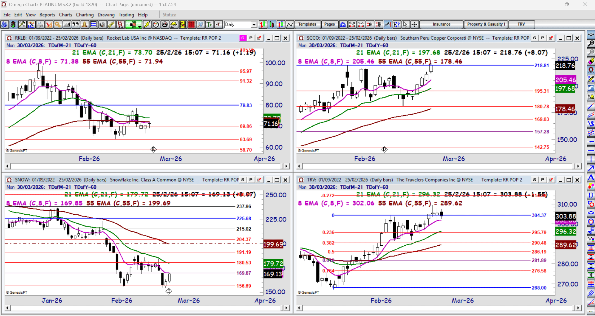 Rocket Lab USA Inc (RKLB), Southern Peru Copper Corporation (SCCO), Snowflake, Inc. Class A Common (SNOW), The Travelers Companies Inc (TRV)