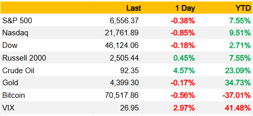 Tech still can’t find its footing: Growth names remain vulnerable as oil, rates, and geopolitical tension keep pressure on the higher-beta crowd. CNBC