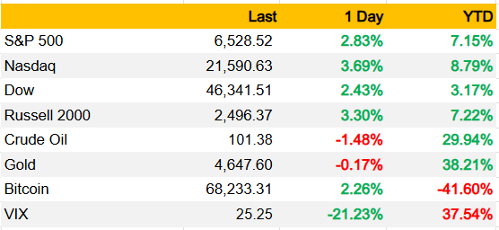 Futures are extending the rally as hopes of Iran de-escalation keep risk appetite alive, traders are still leaning toward at least one 2026 Fed cut, chip names and mega-cap tech keep dragging the tape back toward records, financials are trailing the broader market again, and oil is suddenly one ceasefire headline away from losing its main character energy.