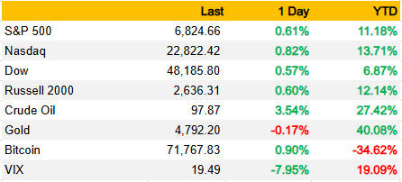 The Fed is still in no-rush mode: Rates remain at 3.5%–3.75%, inflation is still described as “somewhat elevated,” and policymakers continue preaching patience, which is central-bank code for “stop trying to front-run us.” Federal Reserve
