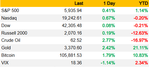Dollar Dips, Gold Rips: DXY down to 98.70, gold +2.5% to $3,370/oz as safe-haven demand returns Reuters.