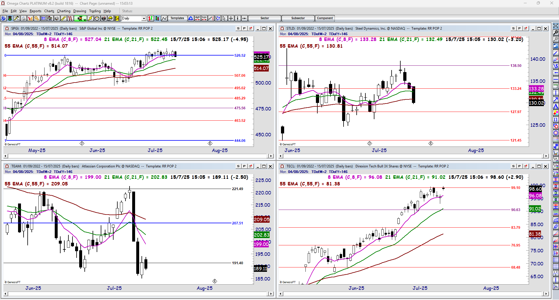 S&P Global Inc (SPGI), Steel Dynamics Inc (STLD), Atlassian Corporation (TEAM), Direxion Tech Bull 3x Shares (TECL)