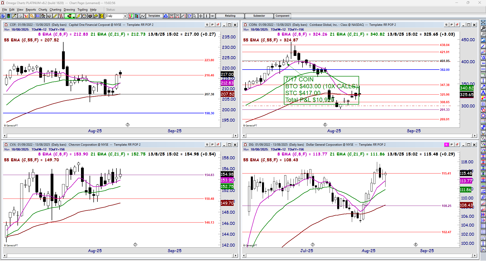 Capital One Financial Coporation (COF), Coinbase Global Inc (COIN), Chevron Corporation (CVX), Dollar General Corporation (DG)