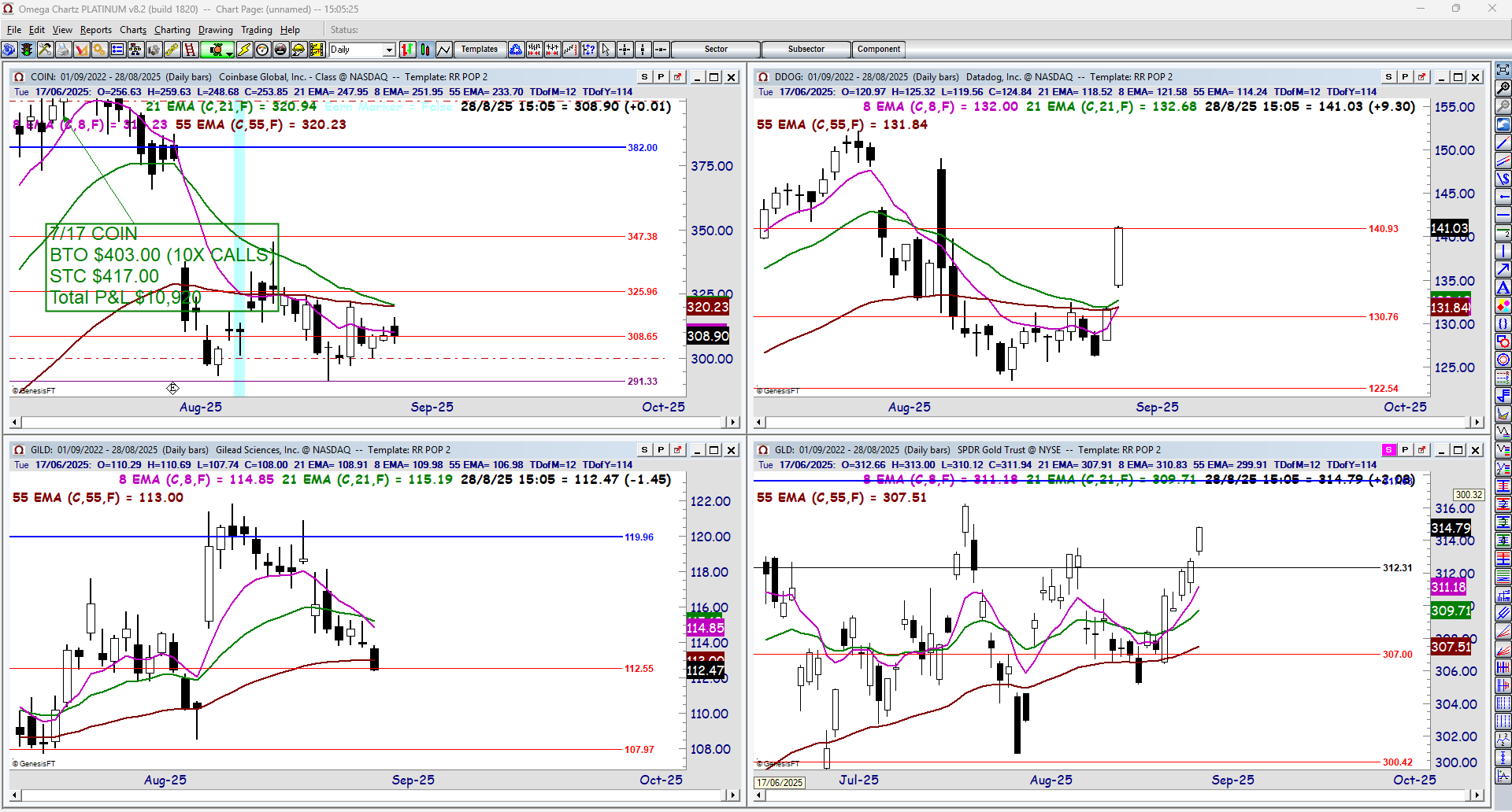 Coinbase Global, Inc (COIN), Datadog, Inc (DDOG), Gilead Sciences, Inc (GILD), SPDR Gold Trust (GLD)