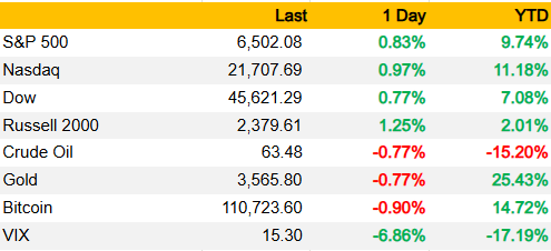 Fed cut odds surge to 99% ahead of Friday’s jobs report, the S&P 500 nails yet another record close (because gravity is optional in 2025), Broadcom rips higher on AI demand and an OpenAI hookup, Lululemon faceplants on tariffs and weak U.S. demand, and Tesla shareholders will soon decide if Elon’s $29B is well-earned or just another Tuesday.