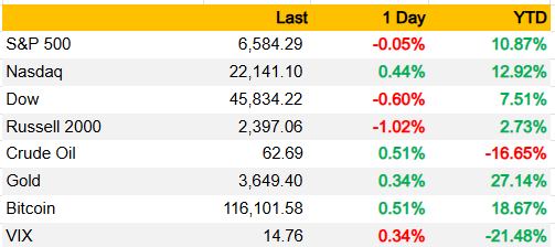Fed cut priced in, volatility risk rising: Market braces for Wednesday’s 25bp cut, but strategists warn of a potential 3%+ pullback. Bloomberg