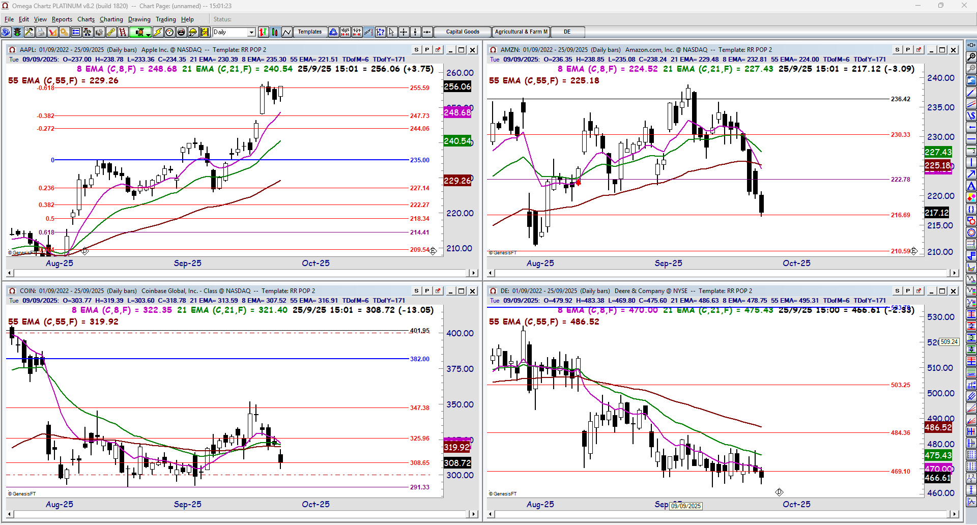 Apple Inc (AAPL), Amazon.com (AMZN), CoinBase Global (COIN), Deere & Company (DE)